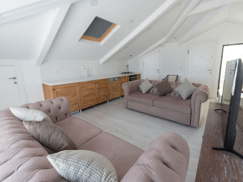Daire içerisinde; tam donanımlı Mutfak, Asansör, LCD televizyon, ücretsiz Wi-Fi, rahat oturma alanı ve modern bir banyo yer almaktadır. Ferah iç tasarımı ve şık detaylarıyla, uzun veya kısa süreli konaklamalarınızda evinizin rahatlığını hissedersiniz.